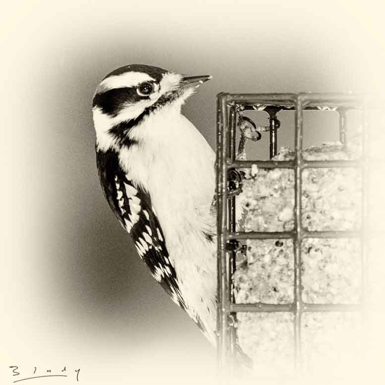 "Downy Woodpecker on suet #1"
