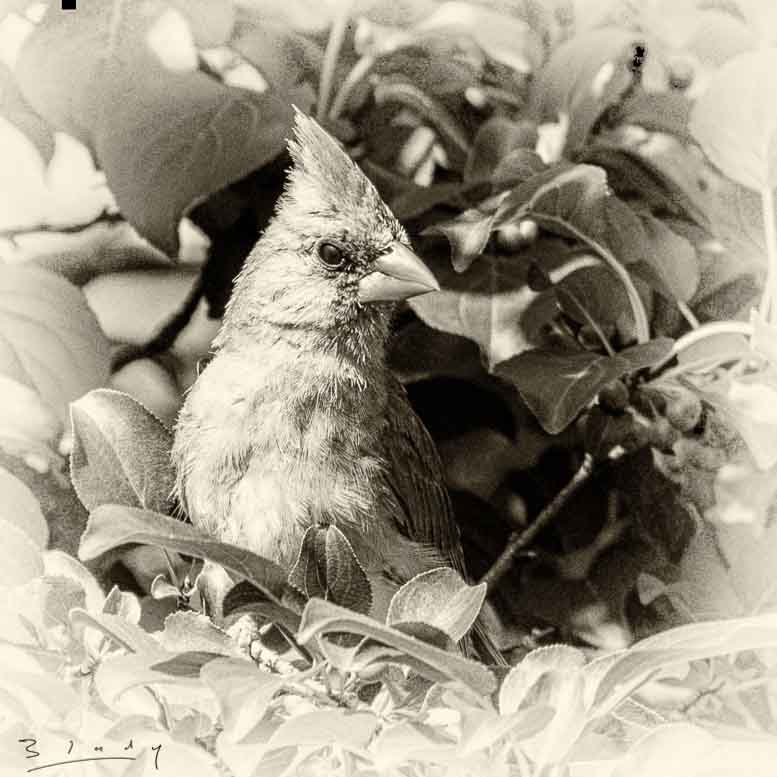 "Cardinal in the leaves"