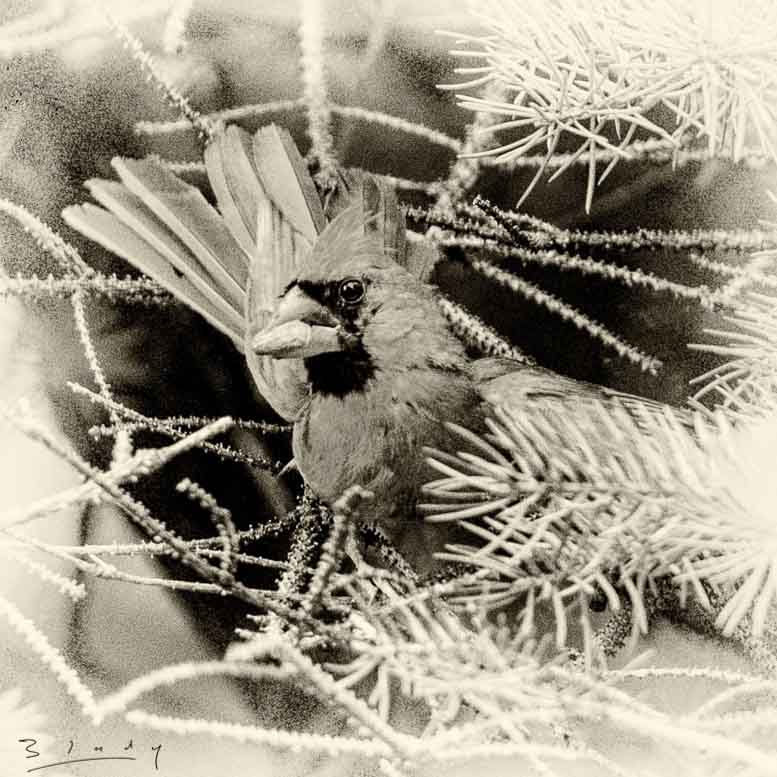 "Cardinal with a peanut"