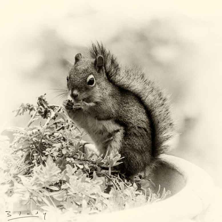 "Red Squirrel on the planter"