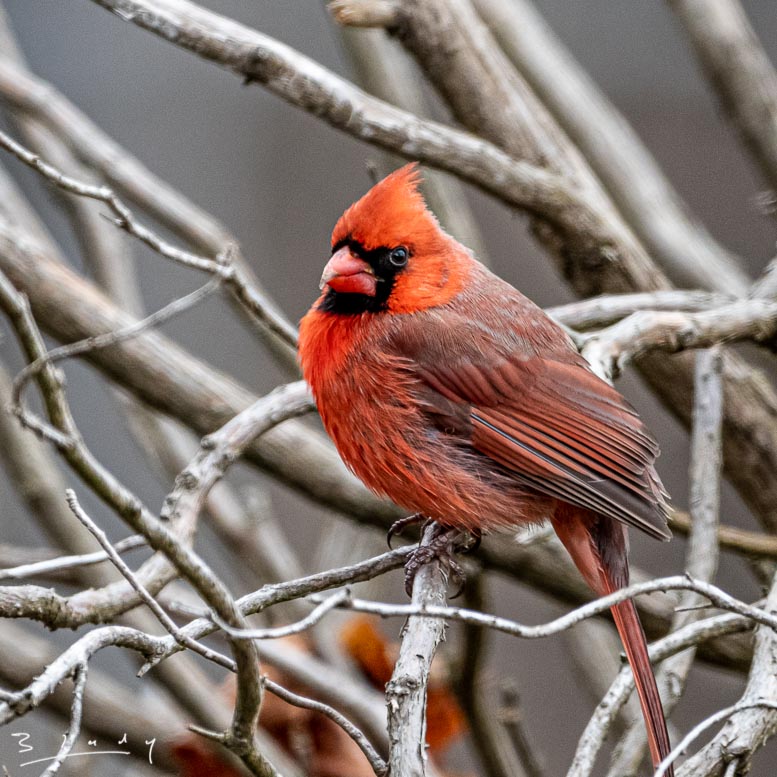 "Male Cardinal on the hedge #4 C"