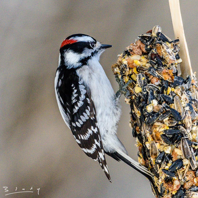 "Downy Woodpecker on seeds C"